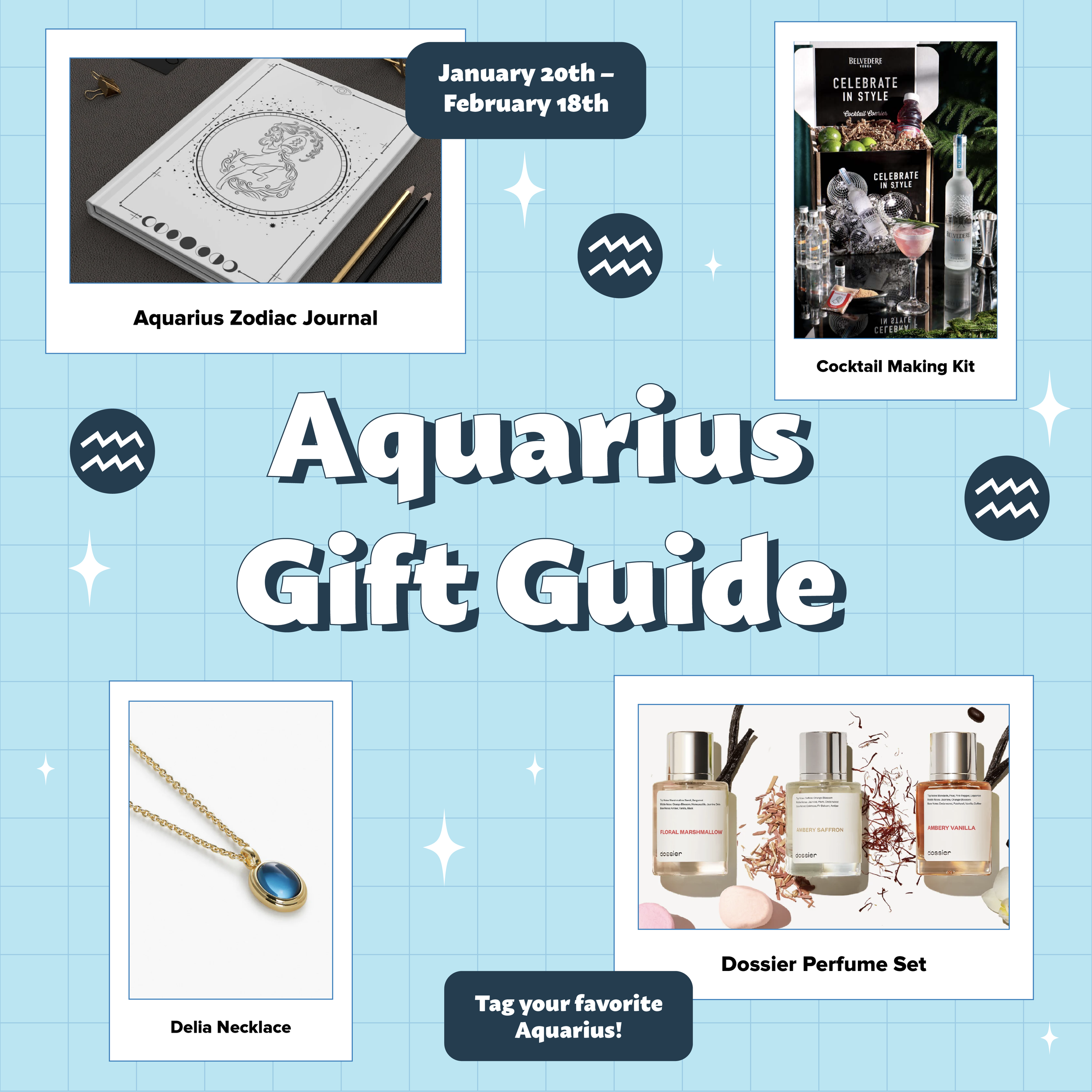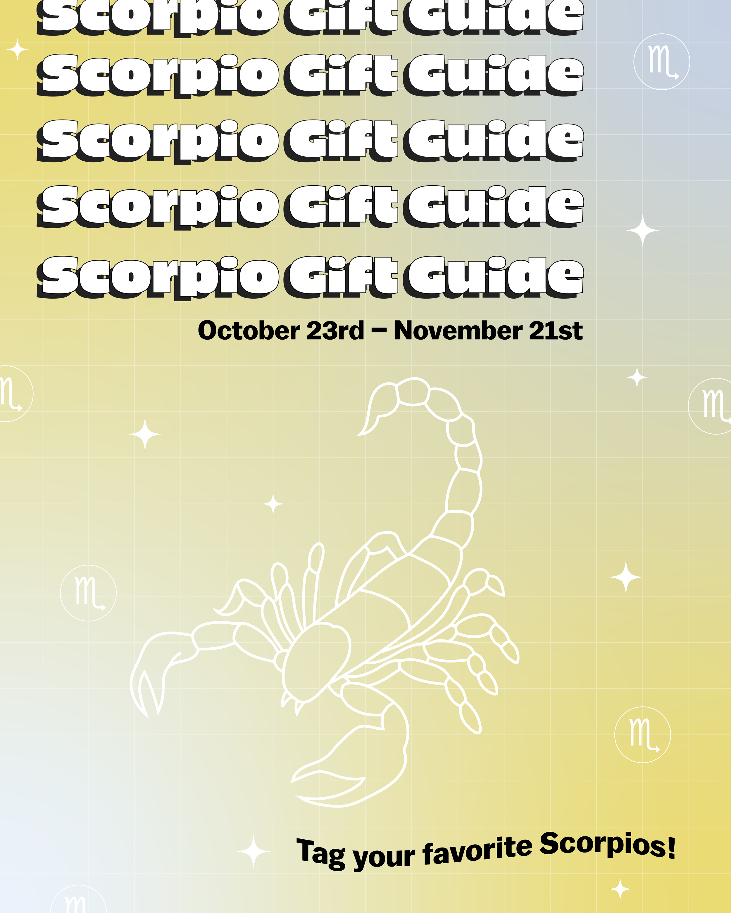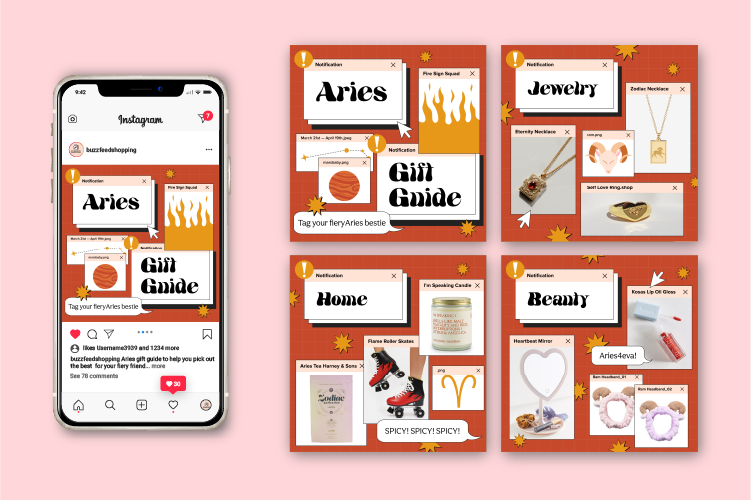 A Zodiac-themed Instagram post series, including monthly gift guide posts for the Zodiac of the month, that are each themed differently to match the corresponding zodiac in style and gift picked. There is also seasonal-themed zodiac content that was created to be posted during the fall.